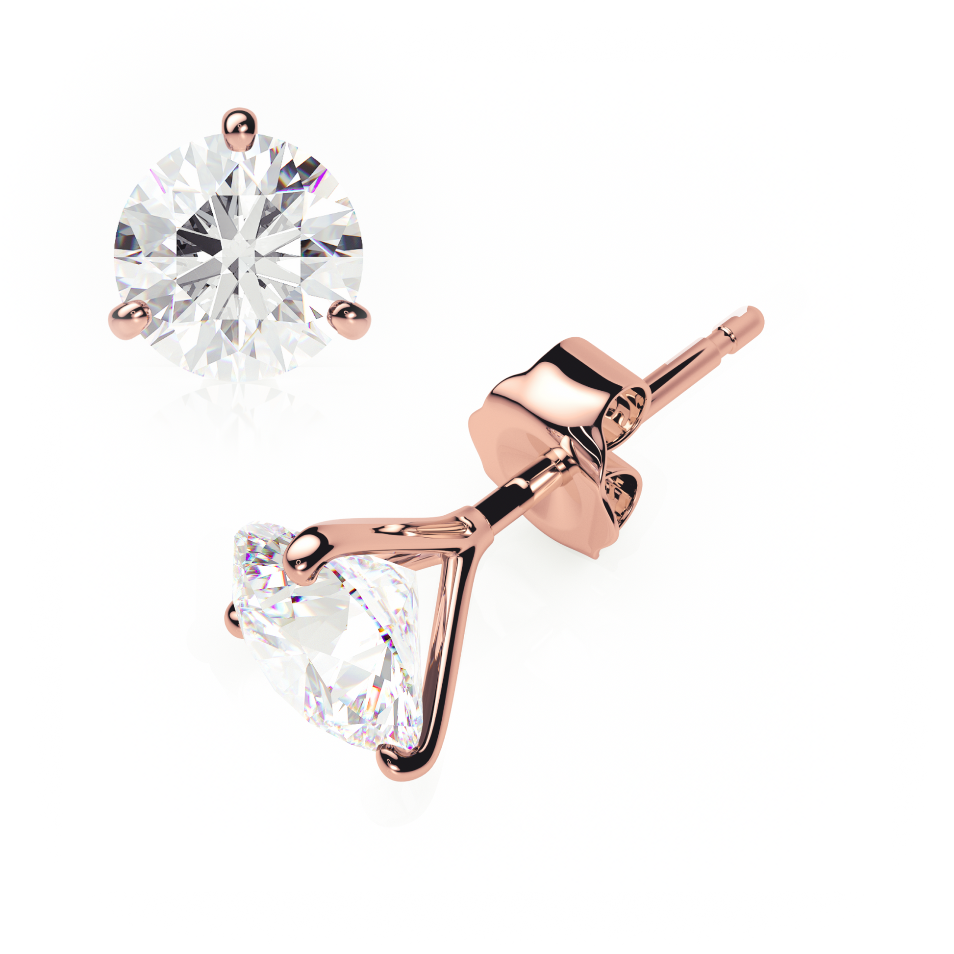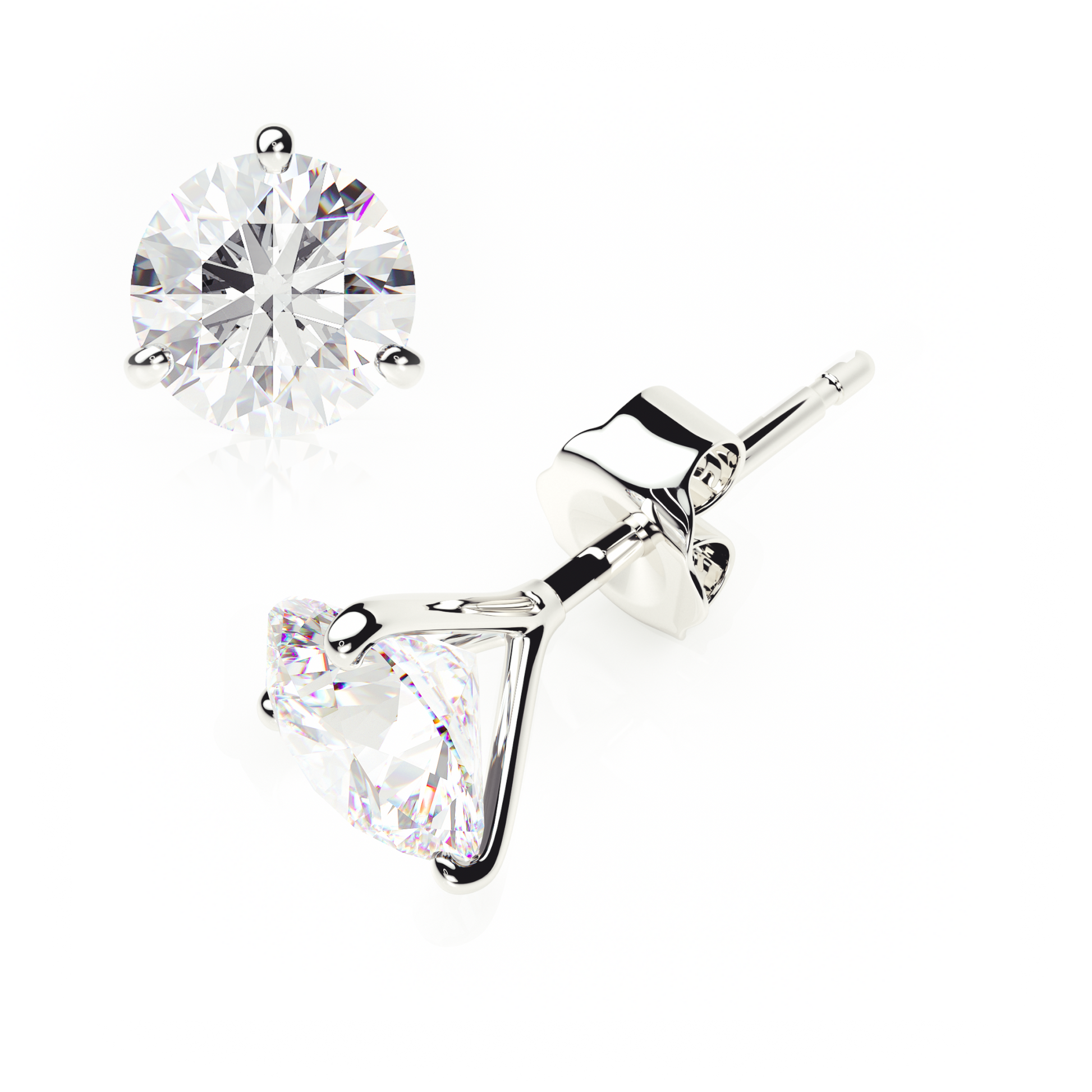 3 Claw Butterfly - Round Shape - Diamond Stud Earrings