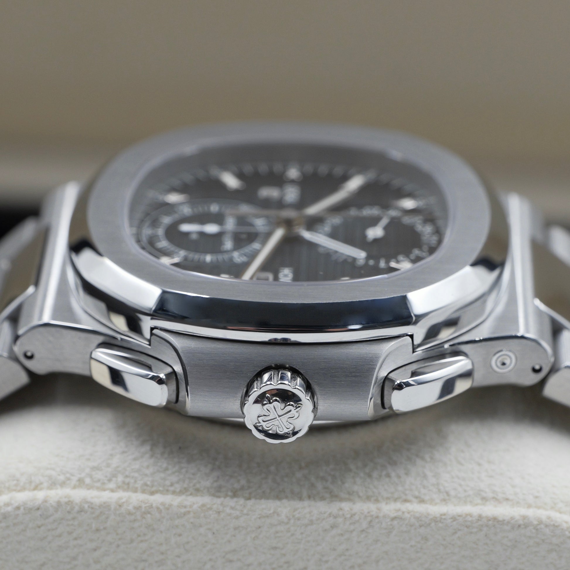 The Patek Philippe Nautilus 5990/1A-001 in stainless steel is the ultimate expression of modern sport-luxury sophistication. Seamlessly integrating a dual time zone function and flyback chronograph within the legendary Nautilus design, it stands as one of the most versatile and mechanically advanced models in the collection.