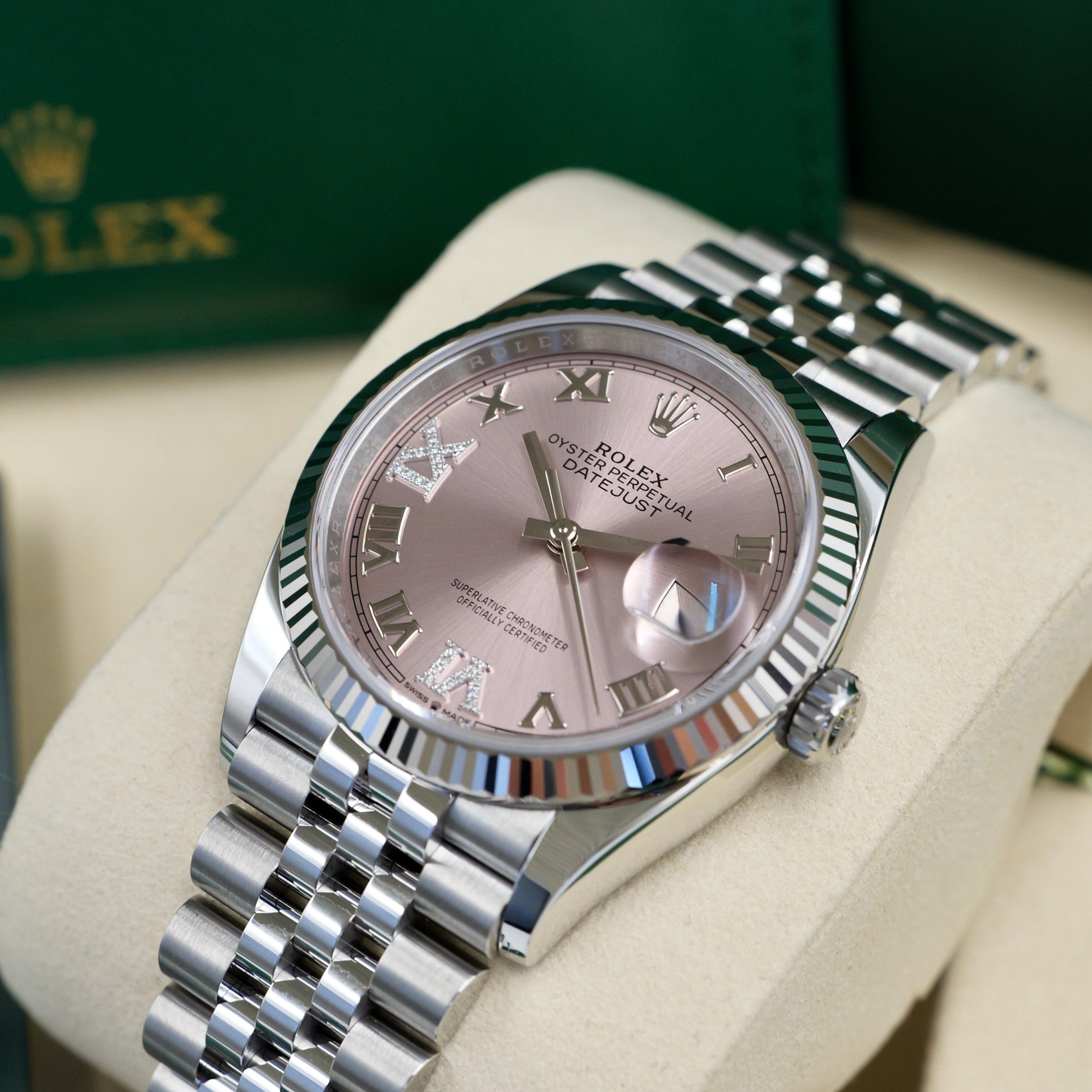 Rolex Datejust 36 Pink Dial with Diamond 6 & 9 Numerals 126234 - Full Set (2025)