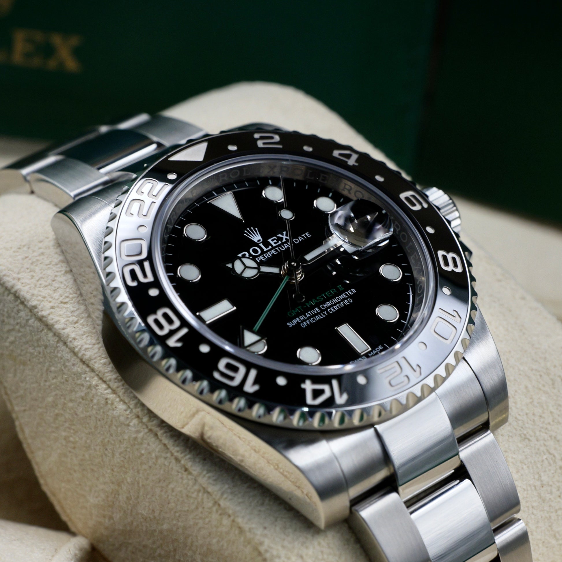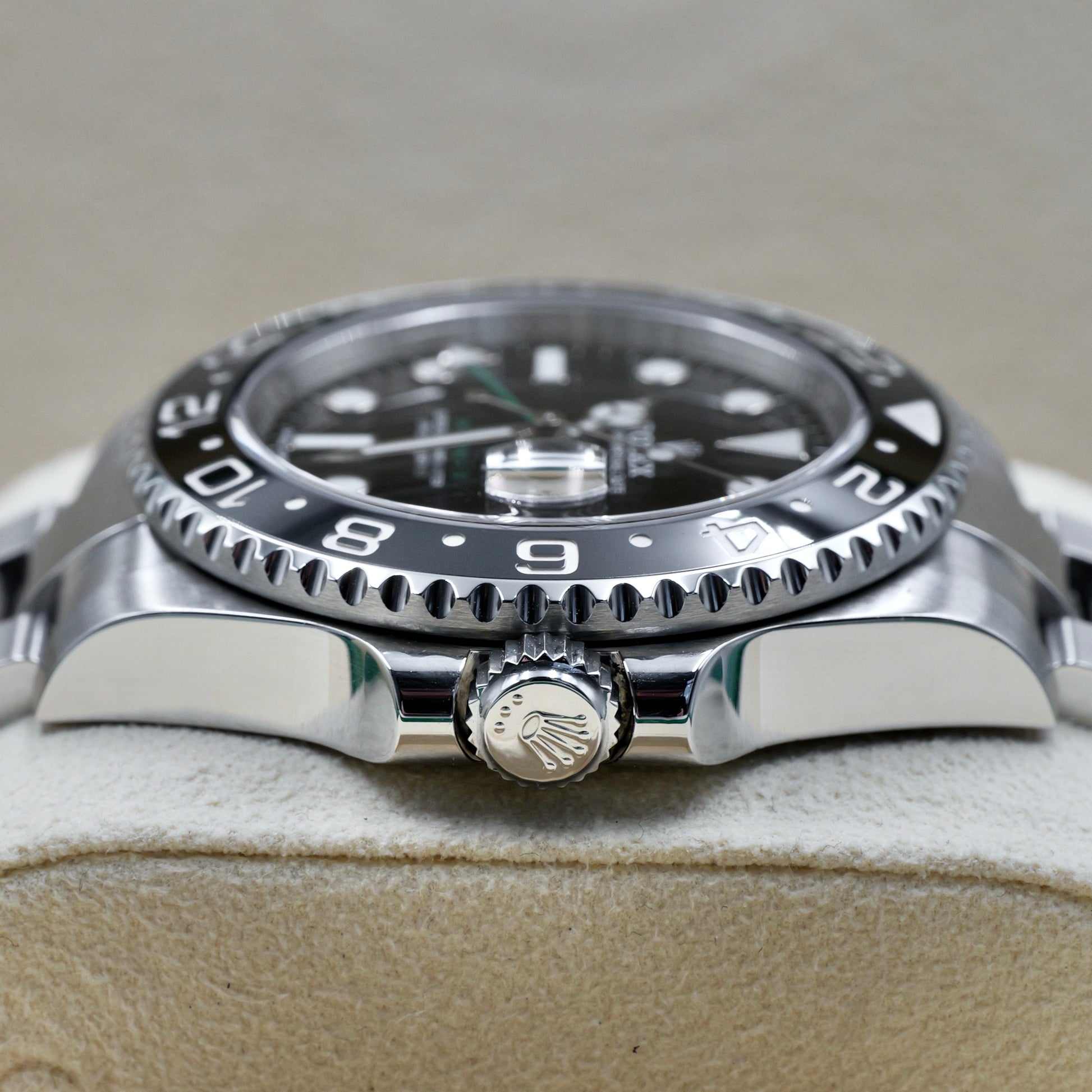 The Rolex GMT-Master II reference 116710LN represents a defining era in Rolex’s professional watchmaking. Combining robust functionality with sleek aesthetics, it was the first GMT-Master II to feature Rolex’s proprietary black Cerachrom bezel insert—ushering in a new generation of durability and sophistication for the brand’s legendary travel watch.