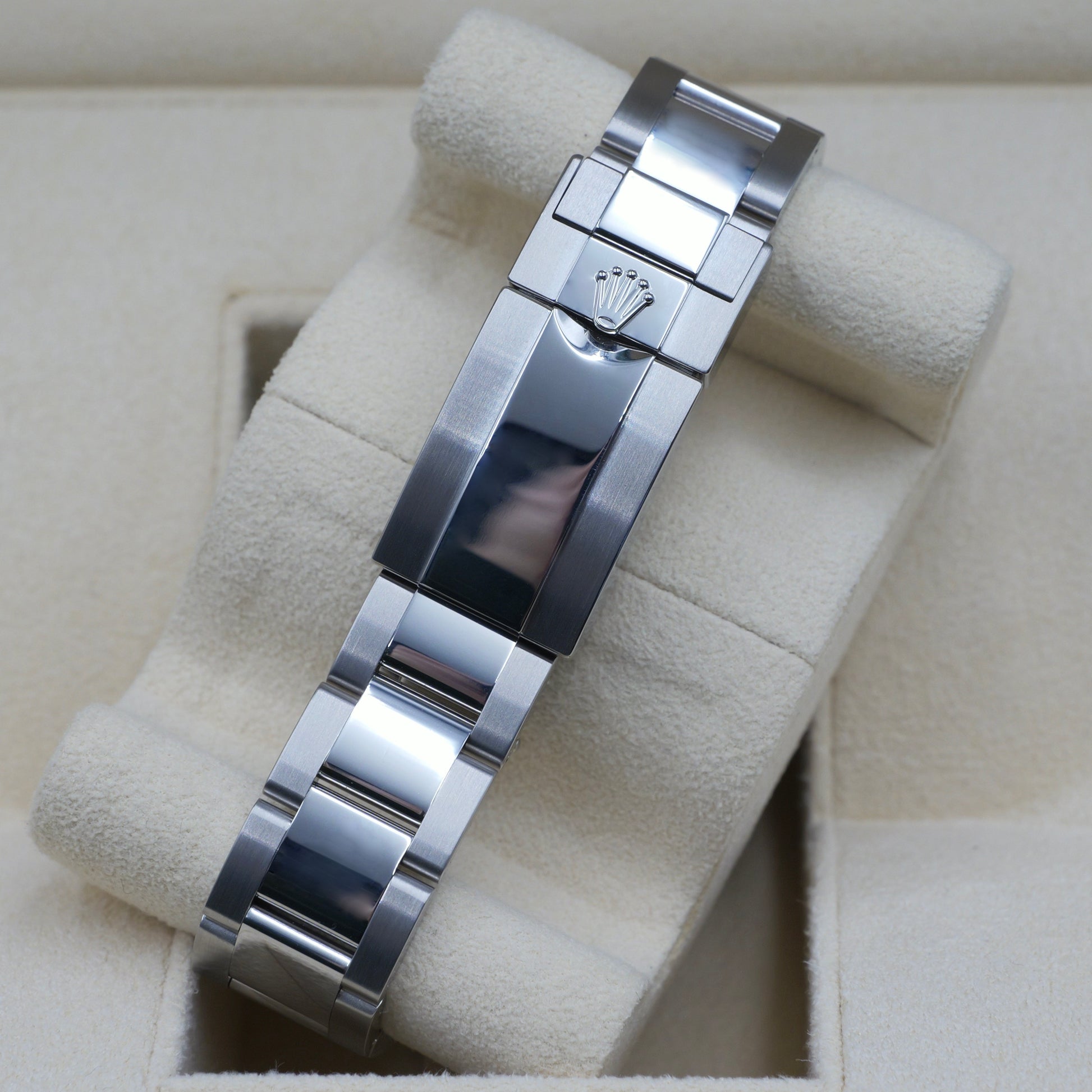 The 40 mm Oyster case, crafted from corrosion-resistant Oystersteel, embodies strength and refinement. Its polished lugs and brushed surfaces balance professional utility with elegance, while the bidirectional rotatable bezel features a monobloc Cerachrom insert engraved with a 24-hour scale in platinum PVD. The deep black ceramic finish, impervious to fading or scratching, complements the gloss-black dial for a cohesive and powerful aesthetic.