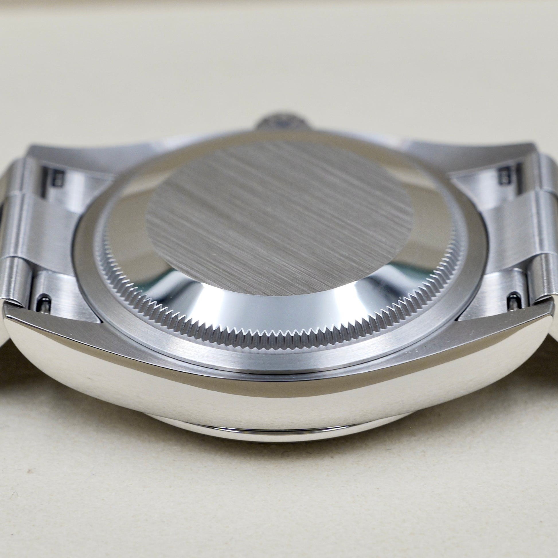 The Rolex Oyster Perpetual 36 126000 in Oystersteel, featuring the vibrant green lacquered dial, offers a modern, minimalist take on the brand’s purest design expression. Its 36mm Oyster case, polished to perfection, embodies everyday versatility with unmistakable Rolex quality.