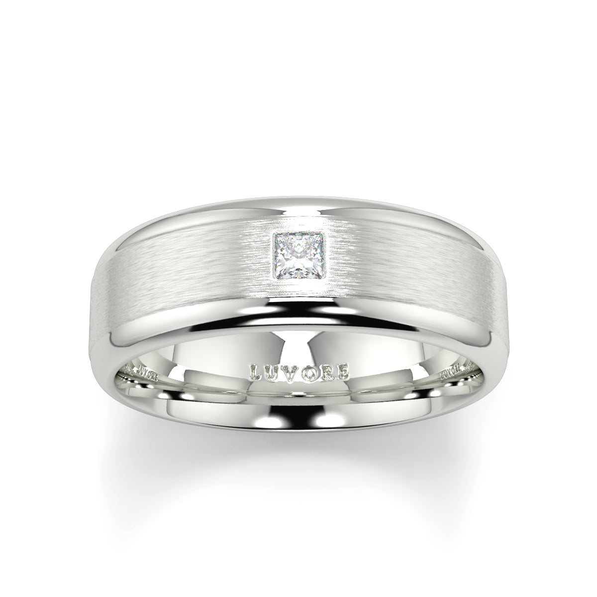 This wedding band, with its sophisticated princess cut diamond, is the perfect symbol of your everlasting commitment. Its matte finish not only adds a touch of modern elegance but also ensures it stands out uniquely, making your special day even more memorable.