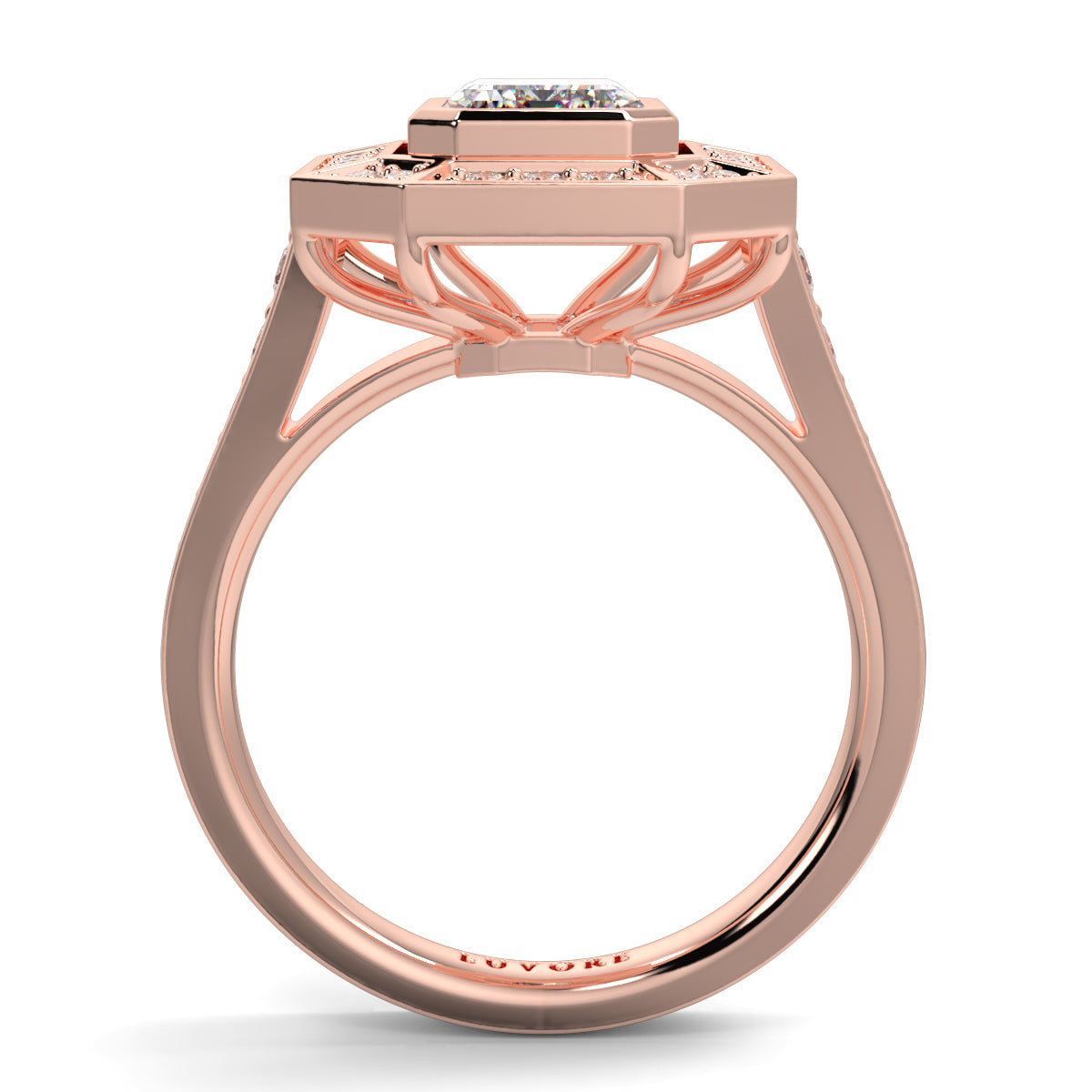 Diamond Setting – Art Deco-Inspired Halo Mount (Designed for Emerald-Cut Diamond)